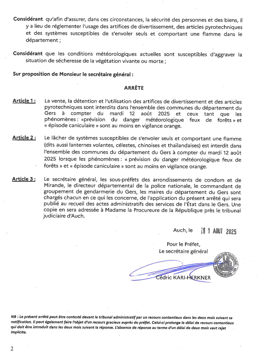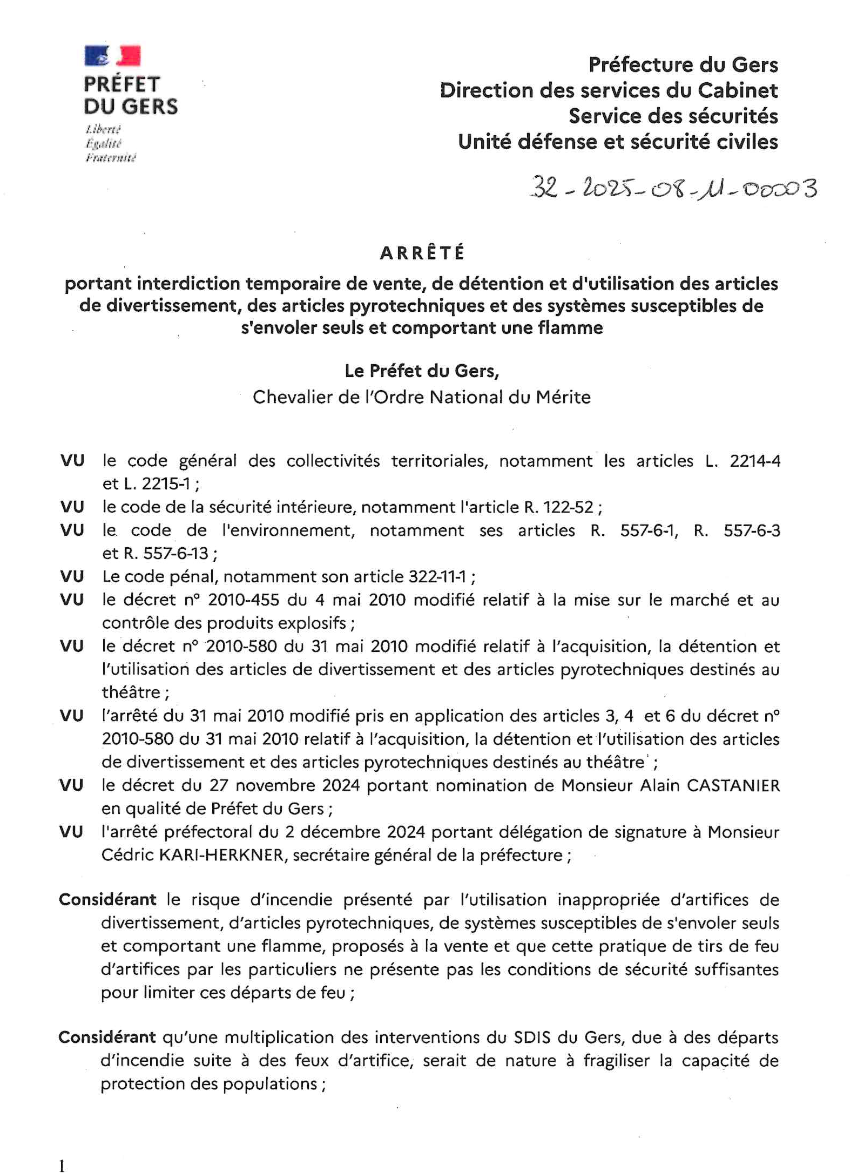 • Arrêté préfectoral sur les artifices de divertissements et articles pyrotechniques